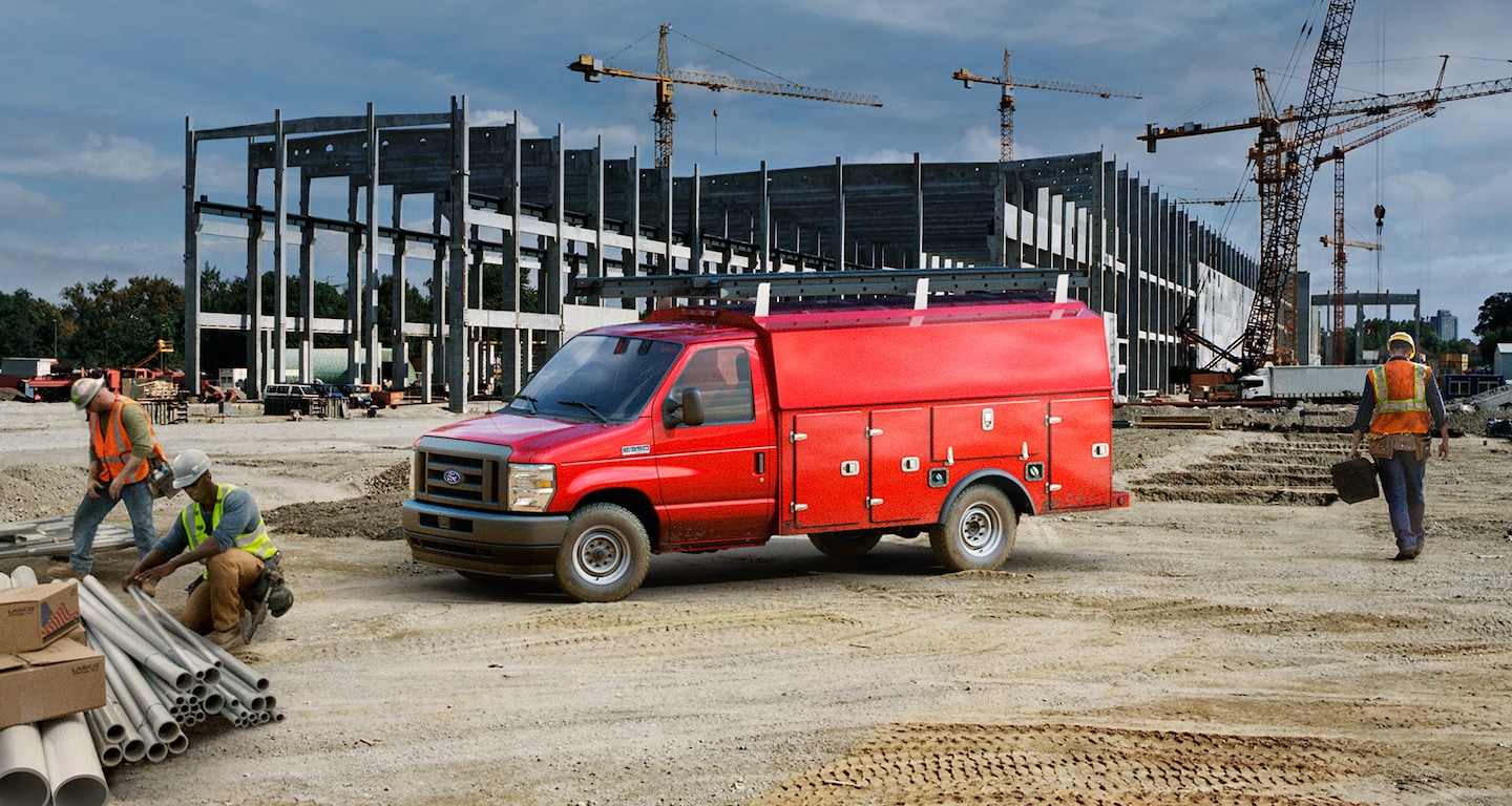 With its full-frame construction and standard V8 muscle, E-Series Cutaway models have an impressive towing capacity of up to 10,000 lbs. when properly equipped. Plus, at its best, the 2023 E-450 is available with a 14,500-lb. GVWR. What's more, the Ford TorqShift® six-speed automatic transmission has an integrated driver-selectable tow/haul mode that automatically compensates for grade and load conditions..